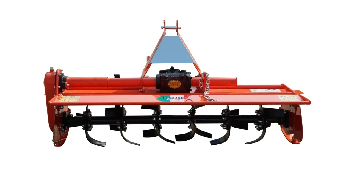 De Boxer Agri grondfrees is de ideale machine voor het bewerken van je grond, zowel voor het frezen van tuinen als voor het voorbereiden van het zaaibed in kleinschalige akkerbouw. Deze grondfrees is ideaal voor kleine/compacte trekkers en heeft een kettingaandrijving aan de zijkant. Hij is makkelijk aan te sluiten met een universele 3-punts bevestiging (Cat. 1) en je stelt de diepte eenvoudig in met de glijstangen aan de zijkant. De grondfrees wordt geleverd met aftakas. Verkrijgbaar van 95, 115, 125 en 150 cm.